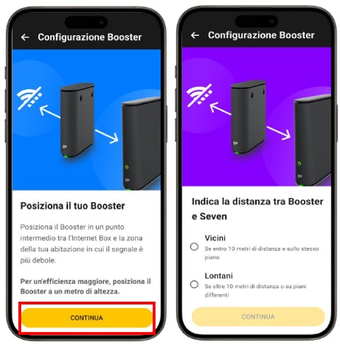 Una volta installato il modem Seven, nella Home page comparirà una card che ti guiderà nell’installazione del Booster