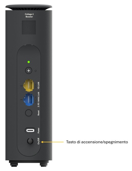 Il tasto di accensione e spegnimento si trova nella parte posteriore del tuo Fastweb Booster.