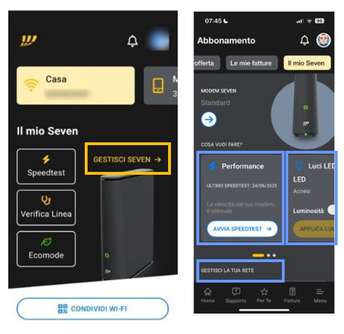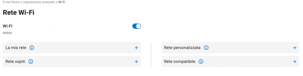 Da Gestisci Seven puoi accedere a tutto il mondo delle configurazioni di Fastweb Seven (Stato della rete, la mia rete e rete ospiti, associazione booster, gestione nome rete/password, impostazioni avanzate, programmazione wifi, etc)