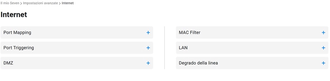 Tramite questa sezione potrai verificare/modificare alcuni parametri del tuo modem seven (attivazione/disattivazione wi-fi, nome rete e password e attivare/disattivare la rete 2.4ghrz o 5ghrz)