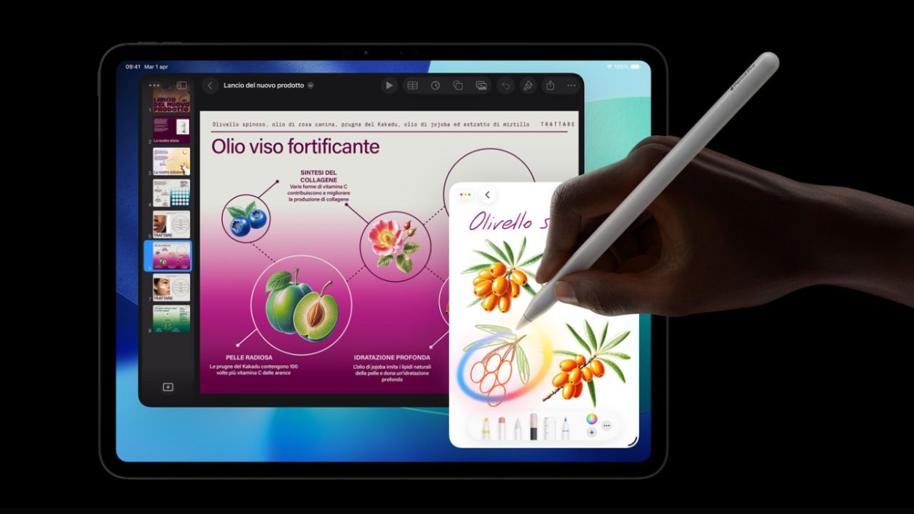 - Le sue potenzialità sono ulteriormente amplificate dalla piena compatibilità con Apple Intelligence e dall'uso di accessori dedicati come la Apple Pencil Pro e la nuova Magic Keyboard.