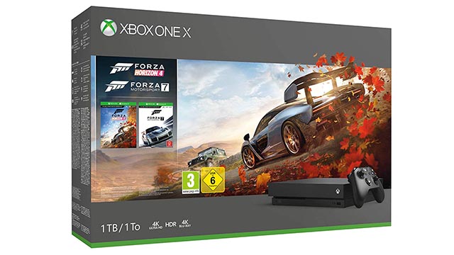 La Xbox One X è la console più potente disponibile sul mercato con una potenza di elaborazione grafica pari a 6 teraflops (il 40% in più rispetto a qualsiasi console disponibile sul mercato). Con la Xbox One X è possibile vedere film Blu-ray con una risoluzione 4K e con l'HDR. Inoltre, sono disponibili le applicazioni per Netflix, Amazon Prime Video e altri servizi di video in streaming. La console è compatibile anche con i videogame della Xbox 360 e in futuro anche con i giochi sviluppati per la prima Xbox. Online è disponibile un bundle con Xbox One X, Forza Horizon 4, Forza Motorsport 7, 1 mese di abbonamento a Xbox Game Pass (con l'accesso a più di 100 giochi) e 14 giorni di abbonamento a Xbox Live Gold a poco meno di 500 euro.