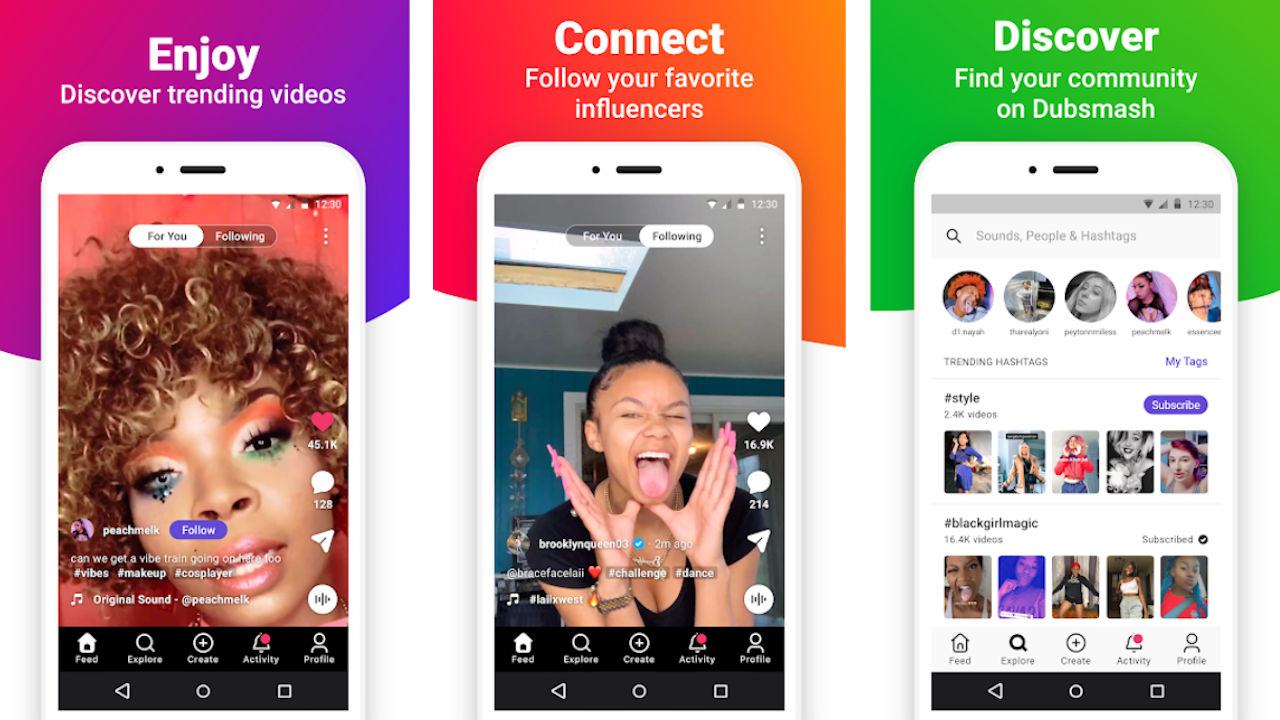 L'interfaccia è molto simile a quella di TikTok, con la differenza principale che toccando un video mentre è in riproduzione si disattiva l'audio, ma non viene messo in pausa. I Dubs vengono caricati in un Feed, dove puoi trovare quelli più di tendenza oppure i video caricati dagli utenti che segui.