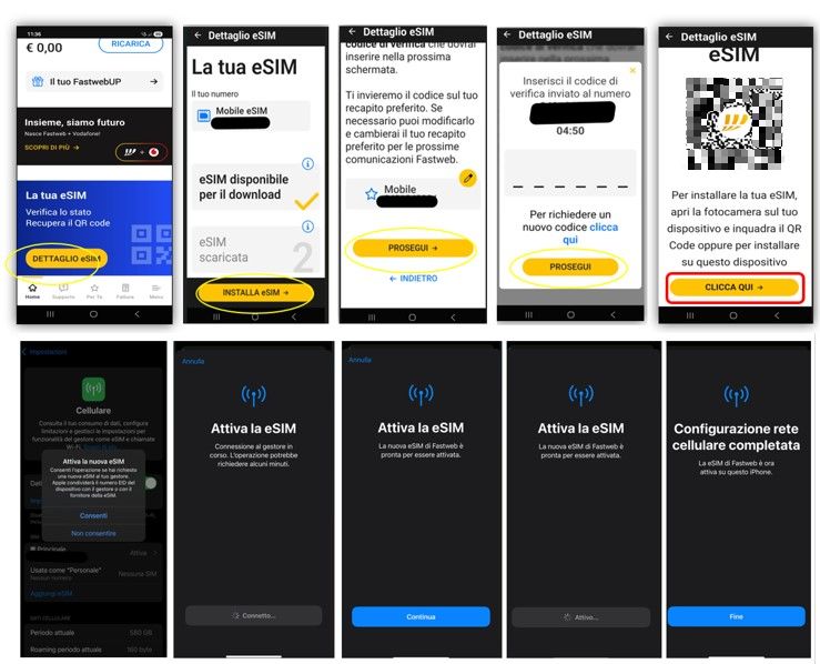 - attivare una eSIM Fastweb con nuovo numero o con un numero portato (nuova attivazione)
