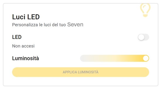 Da questa sezione potrai regolare la luminosità dei led del tuo modem Seven