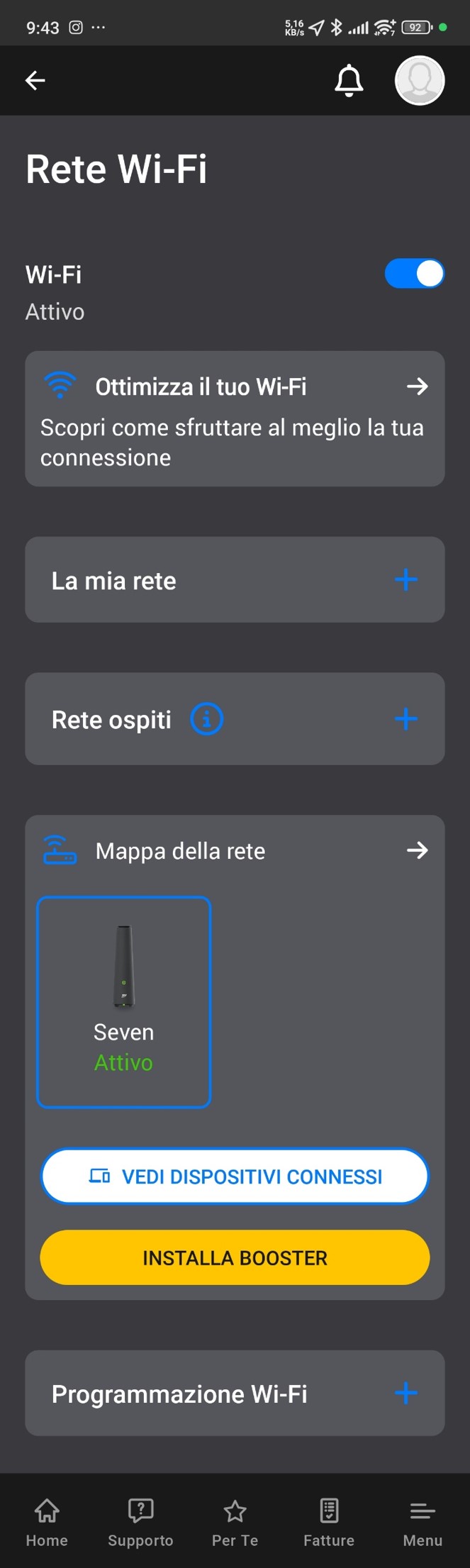 Da Gestisci Seven puoi accedere a tutto il mondo delle configurazioni di Fastweb Seven (Stato della rete, la mia rete e rete ospiti, associazione booster, gestione nome rete/password, impostazioni avanzate, programmazione wifi, etc)